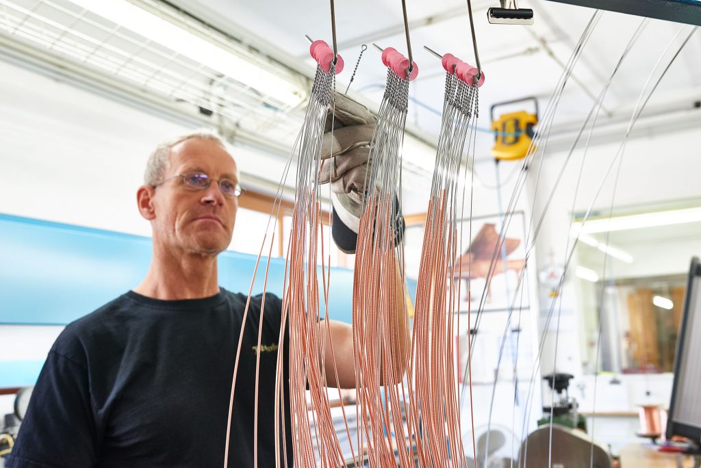 All bass strings are spun in our unique Bösendorfer way. A steel core string is the basis for 1 or 2 layers of copper. The carefully spun strings are a substantial element of the warm and sonorous Bösendorfer bass.