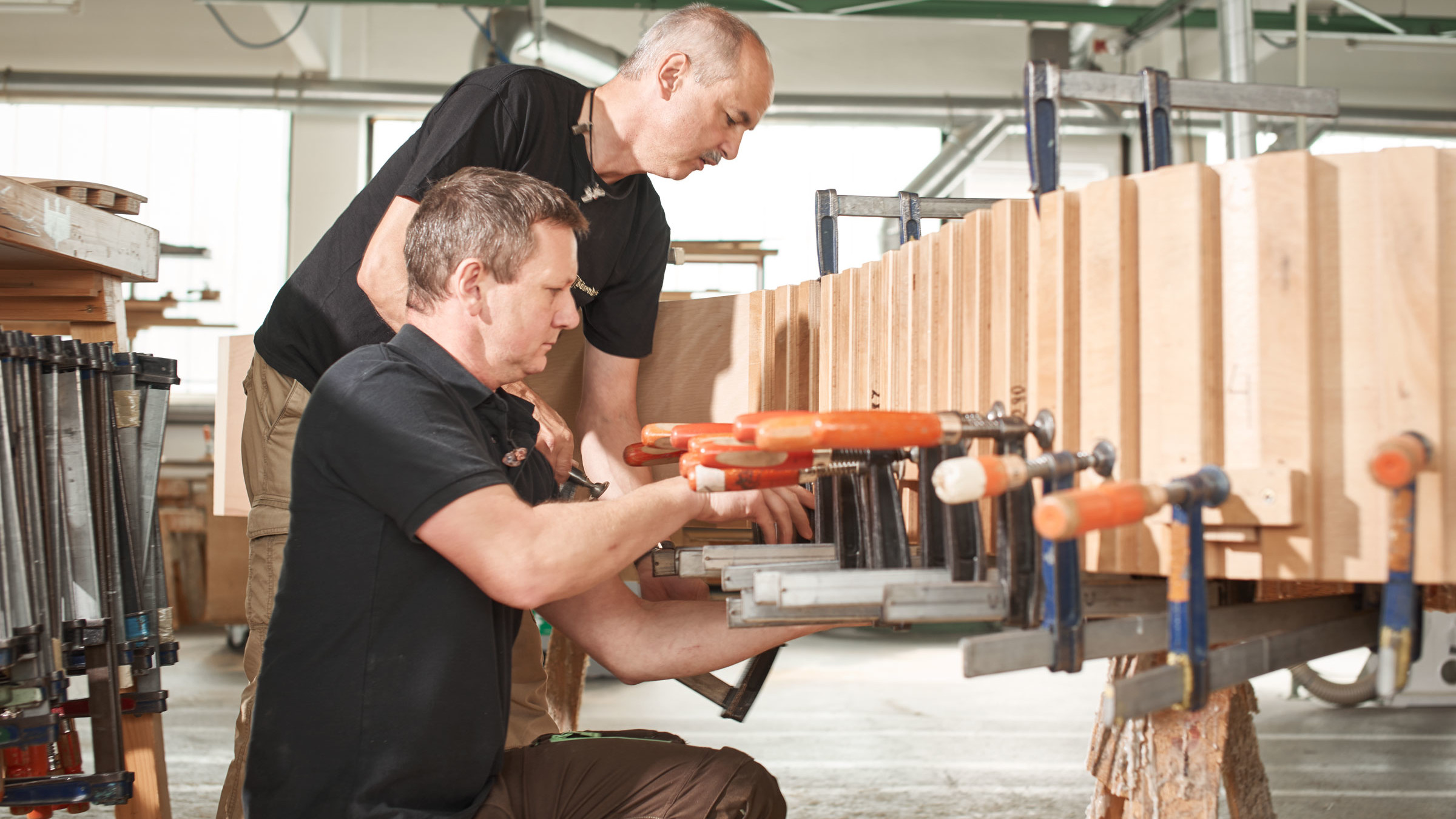 The exclusive production of close to 300 instruments per year allows us to meet your individual requests. Whether you would like to apply precious veneers, your favourite colour or an emblem designed by yourself carefully engraved by master artisans: Anything is possible. Our Bösendorfer Artisans will prepare a colour sample, before we start production and collaborate with you on your design. After your approval, your very own, unique instrument is crafted: